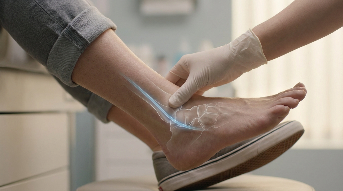 Une douleur dorsale peut descendre au pied. C’est le piège de la lombosciatique. Pourtant, le problème se situe ici à la cheville. L’examen clinique tranche la question.